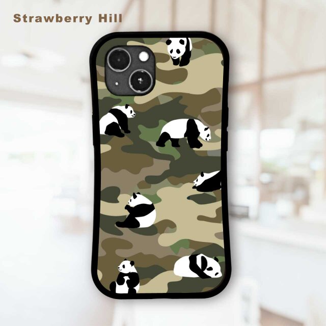 穏やかなパンダが「守護」や「調和」の意味合いを持つ迷彩柄に紛れる遊び心溢れるデザイン。