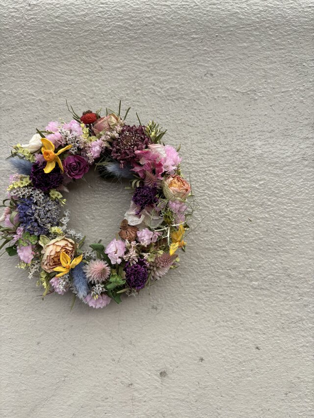 色とりどり、アンティークなお色を集めてリースを作りました。