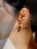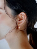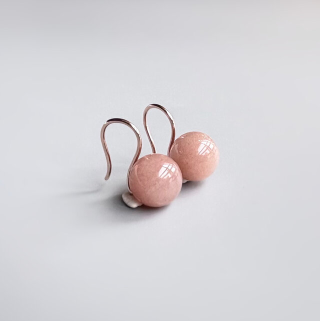 大粒ベージュ色のピーチベージュオレンジムーンストーンピアス〜6月の誕生石サージカルステンレスSUS316L