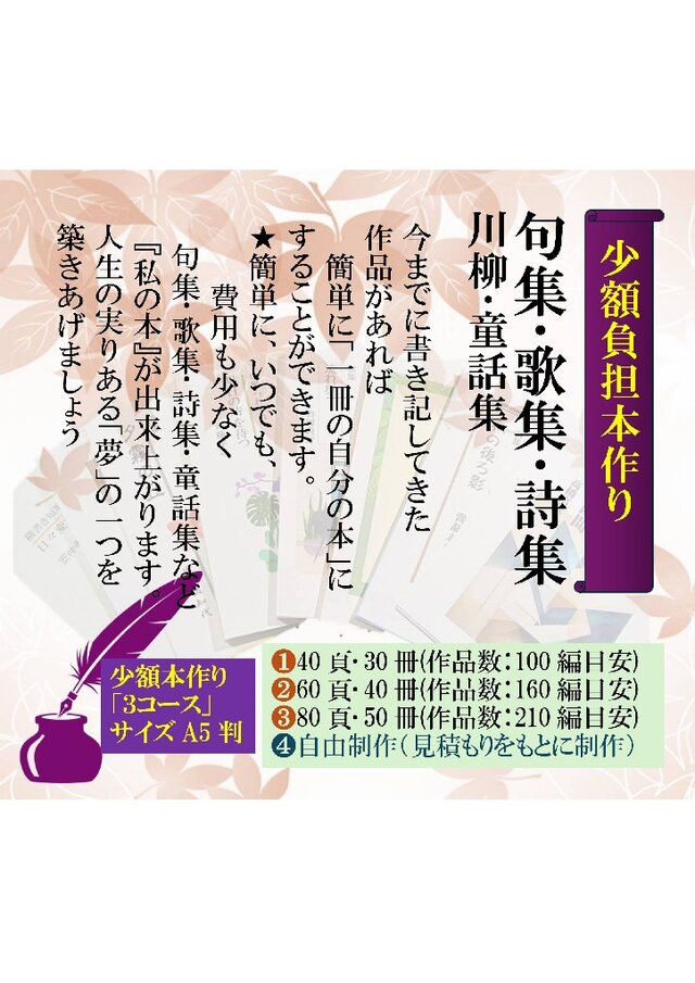 ★『少額本づくり』句集・歌集・川柳・詩集/創作コース③/A5判・50冊/作品があれば簡単本づくり/