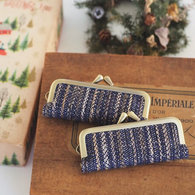 ■手紡ぎ、手織りシルク・ウールのがま口印鑑ケース / d1■ hanko case (gmi-d1)