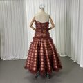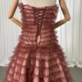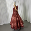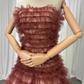 カラードレス ブラウン パーティードレス ベアトップ ソフトチュール 揺らめく裾 音楽会 編み上げ