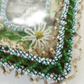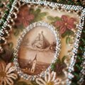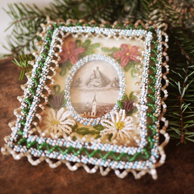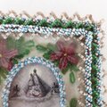 聖母子像ホーリーカードを中心にした美しい技巧のビーズ装飾です。