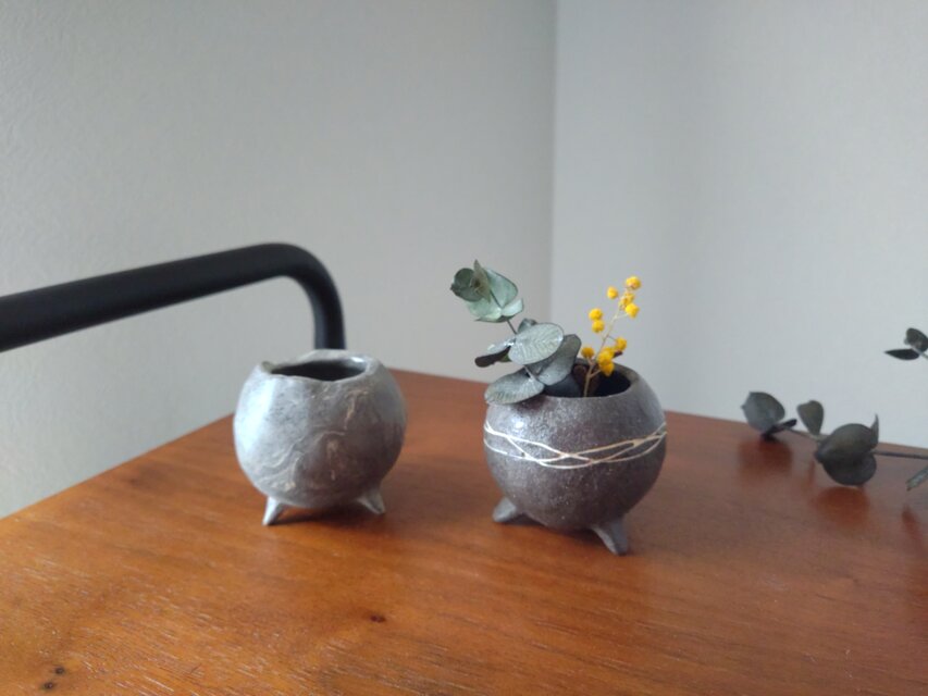 1つ(グレー マーブル)も優しい土感のある風合い。