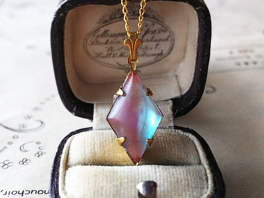 ヴィンテージ、またはアンティーク、約21×12㎜ほどのダイヤモンド型サフィレットでお作りしましたネックレスです。