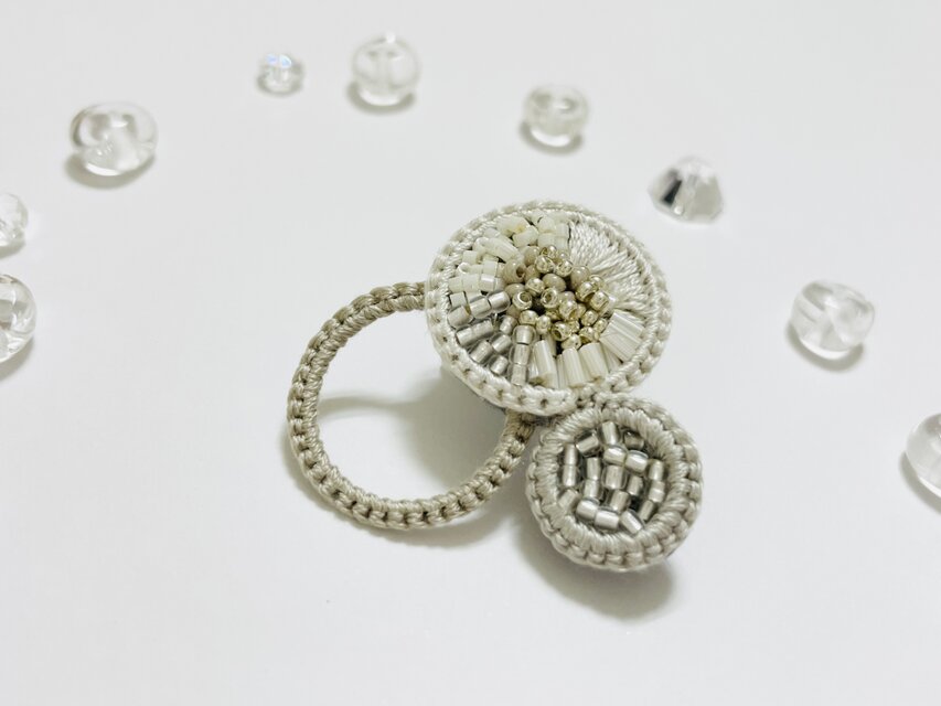 【2個セット 縁ーenー】手刺繍 軽いつけ心地のブローチ LホワイトとSシルバーb012作品が届きました。繊細な刺繡とガラスビーズ、思っていた通りステキです。 いろいろな組み合わせができそうで、楽しみです。 ありがとうございました。