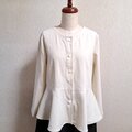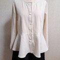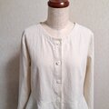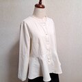 コットンリネン ペプラムジャケット アイボリー 白 綿麻 ノーカラージャケット Lサイズ