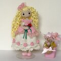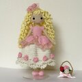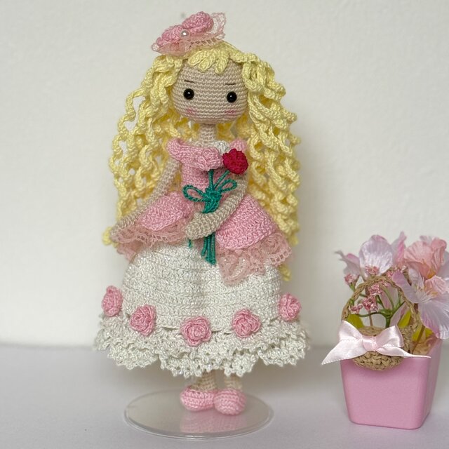 ✿濃い桜色のピンク毛糸とキラキララメ入りのワイト色の毛糸で上品でエレガントなドレス