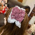 しっとりとした質感の紫ピンク(灰桜色)の生地に、繊細なホワイトレースをふんだんにあしらった、最高にガーリーなカチューシャです。散りばめられた大小のパールが、光を浴びて上品に煌めきます。 フリルレースが醸し出す「和ロリ」な空気感が、乙女心をくすぐる仕上がりに。パーティーやイベント、特別な記念日のランチに。 纏うだけで表情まで優しく、華やかに見せてくれる魔法のアイテムです。