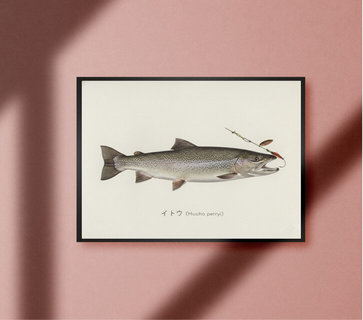 イトウの美しいイラストが描かれたフレーム付きアート。