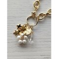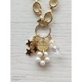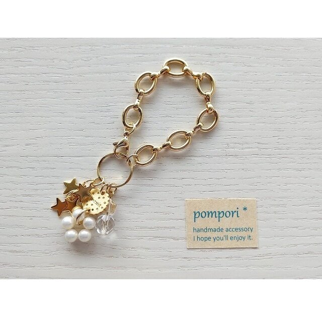 ビスケット型のチャームをメインに、パールのリング、ステンレス製の星チャームなどをシャラシャラと揺らせたバッグチャームです。