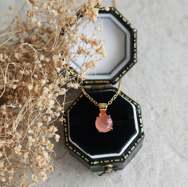●ペルー産インカローズを使用した上質な存在感を放つ一粒ネックレスです。