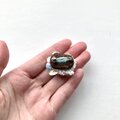 とてもとても素敵なブローチです。青、紺色系の服につけようと購入しましたが、ブローチに使われている数種類の青が美しく馴染みます。そして少し神秘的。 物語のようなブローチの名前にも引き込まれました。 素敵なブローチをありがとうございました。