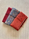 くるっと巻いて、ゆるくとめるタイプの小物入れになります。