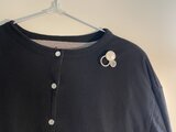 個性がありつつも穏やかなデザインで、他のブローチとも合わせやすく、コーディネートの幅も広がります。