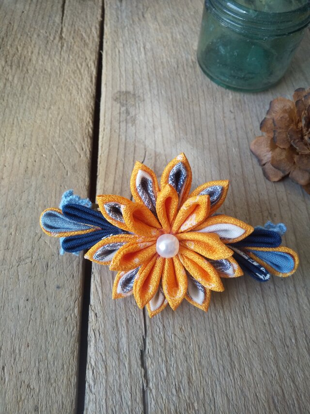 煌めくイエローカラー×ブルー生地で制作致しました。