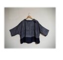 121 1点物 総絞り羽織リメイク プルオーバーブラウス 3シーズン ツイスト衿 黒 リラックス