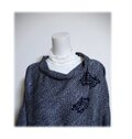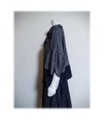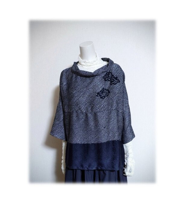 黒の総絞り羽織をリメイクした、ねじったタートルネックの
