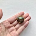 秋になり、作家kanacの頭もつい秋カラーを手に取ってしまう中、深みのあるグリーンとゴールドのブローチ。