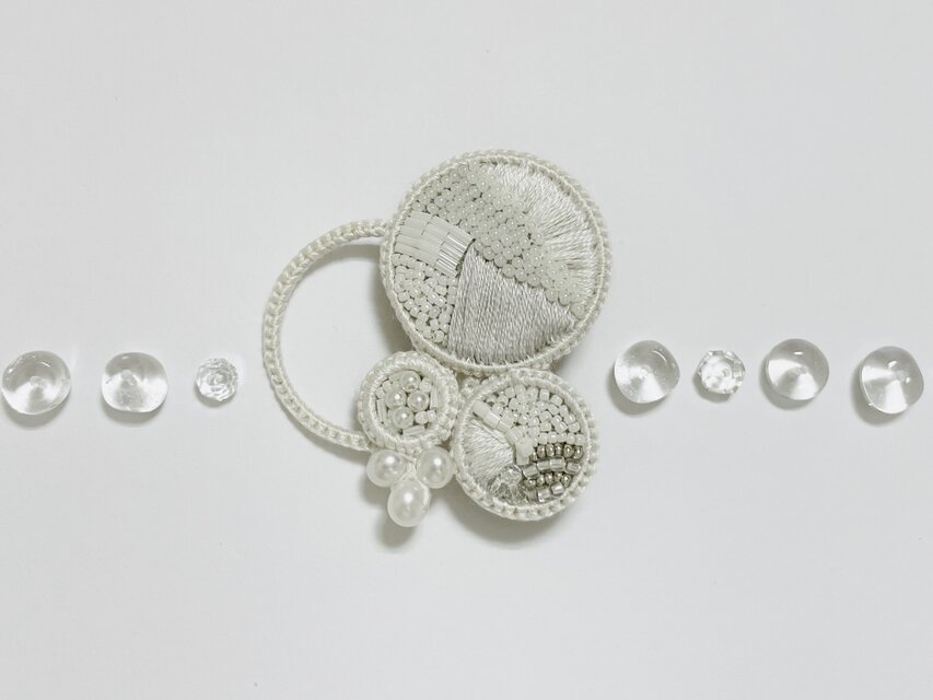 【2個セット 縁ーenー】手刺繍 軽いつけ心地のブローチ LホワイトとSシルバーb012作品が届きました。繊細な刺繡とガラスビーズ、思っていた通りステキです。 いろいろな組み合わせができそうで、楽しみです。 ありがとうございました。