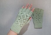 ウィメンズM~Lメリノウール100% 指なし手袋淡緑スマホ対応