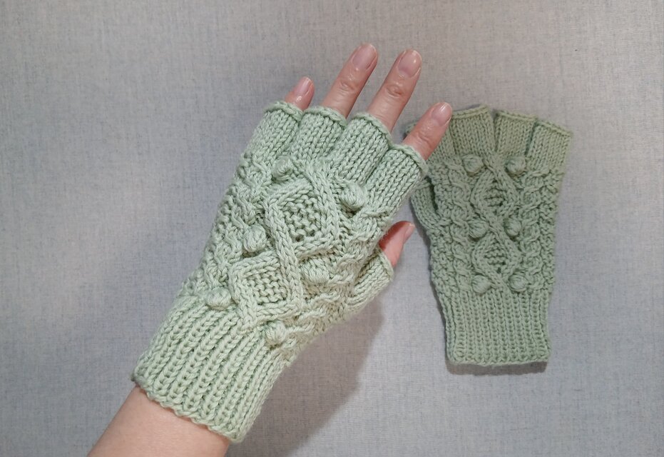 柔らかなメリノウール100%で編んだ、暖かく快適な指なし手袋です。