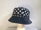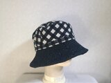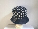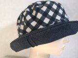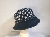 魅せる☆異素材が楽しい♪先染めコットンチェックとブラックデニムのバイカラークロッシュ~ブラック