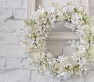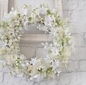 リース素材:アーティフィシャルフラワ-(造花):白いミモザ・スイトピー・ブバリア・あじさい・かすみ草・白いスマイラックスなど。
