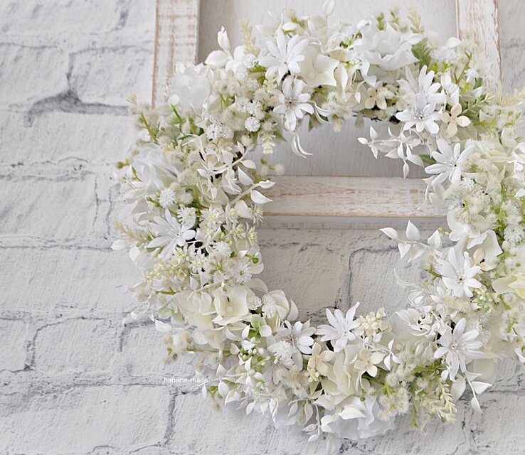 #ナチュラル #春 #白 #小花 #かすみ草 #春リース #花リース #アーティフィシャルフラワー #冬 #ウェディング #ウェルカムフラワー #結婚 #ナチュラル #かわいい