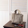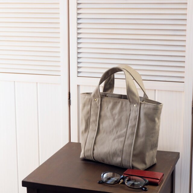 ヴィンテージ帆布の蓋付きトート/S◇グレーベージュ