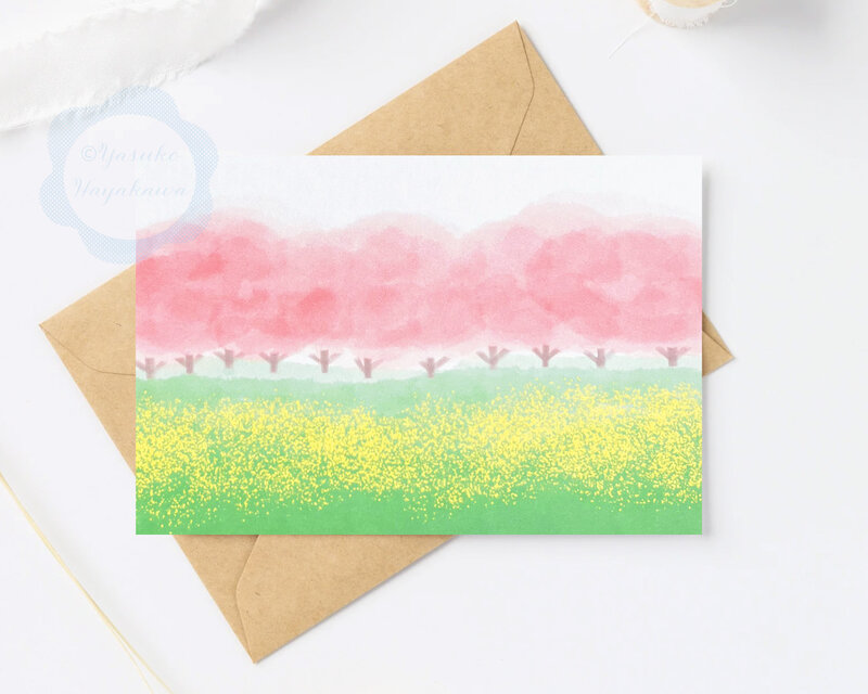 (72)桜並木と菜の花畑の風景 ポストカード 3枚セット