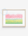 桜並木と菜の花畑の春の風景を水彩タッチで描きました