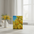 この「青い空とミモザ」は、お客様の生活空間に春の彩りをもたらし、心を癒す特別なアート作品です。