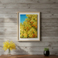 この作品は単なる風景描写を超えて、春が持つエネルギーと喜びを凝縮したアートです。油絵の具の物質感と鮮烈な色彩が融合し、心に温かな光を灯してくれることでしょう。「青い空とミモザ」は、お客様の空間に春の息吹をもたらし、特別な感動を与える作品です。