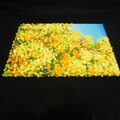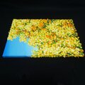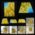 本作品の特筆すべきポイントは、厚塗りの技法によって生まれるリアルな存在感です。無数の小さなミモザの花々は、まるで生きているかのように花びらの柔らかさまで感じさせ、観る者に春の息吹を届けます。また、作品の上部に広がる青い空は、ミモザの黄色との鮮やかな対比が絶妙で、希望や開放感を象徴しています。
