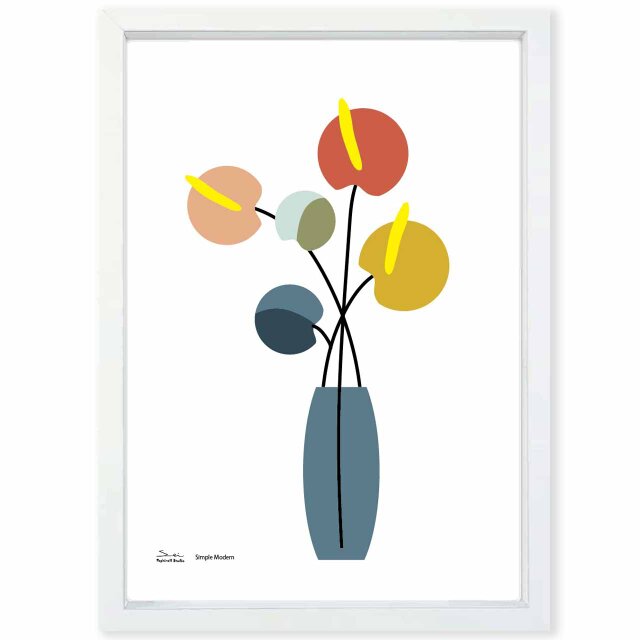 シンプルでモダンな色彩の花 余計なものを足さない「引き算」のアートポスター。