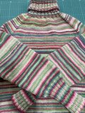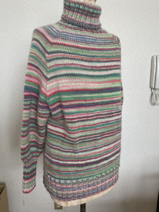 カラフルな段染め糸の手編みセーターです。