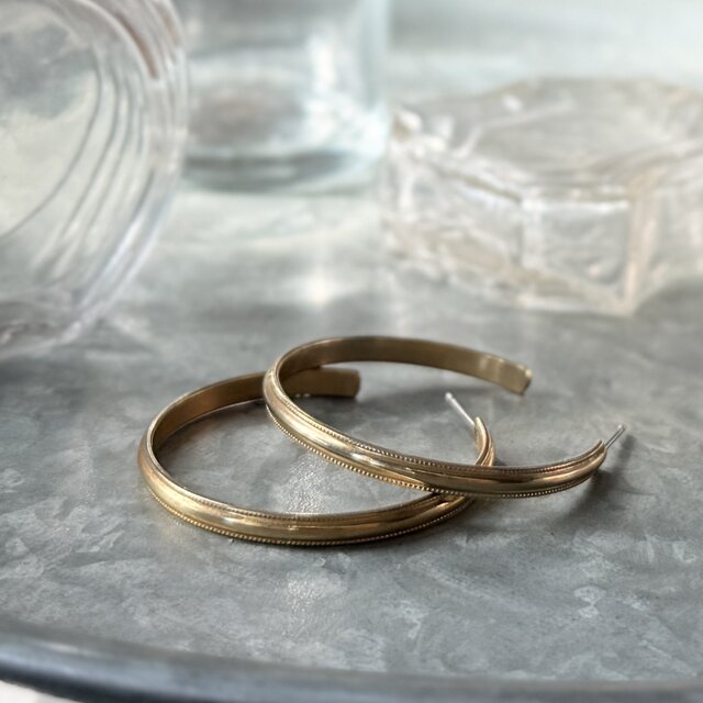 しっかりとしたメタルで高級感を感じさせ、程よく大きめのフープで使い勝手がよく、現代のさまざまなシーンの着こなしにシーズンレスで馴染みます。