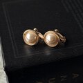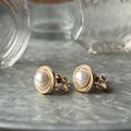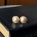 ゴールドトーンのツイストロープの縁取りにフェイクパールのクラシックなイヤリング。