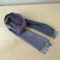 よこ糸には手紡ぎカシミヤのコチニールで染めた紫3色で大きく織り分けました。