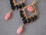 14kgf インカローズ&ブラックスピネルのスクエアフリンジピアス k14gfのコピー