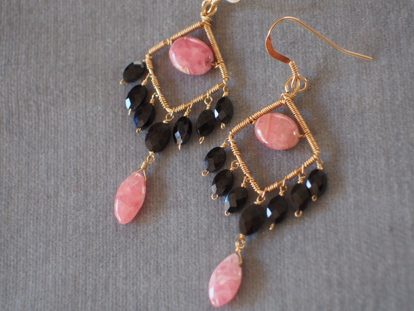 ピンクカラーのかわいいインカローズとブラックスピネルを使いました。