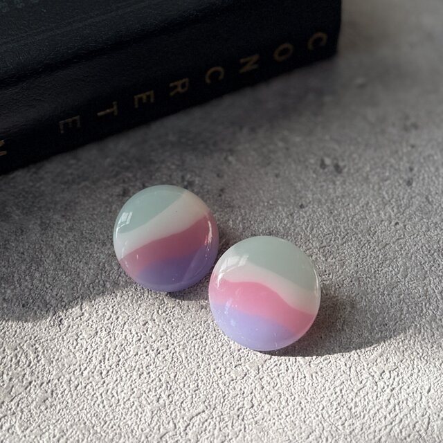パステルカラーストライプ模様のアクリルラウンドピアス。