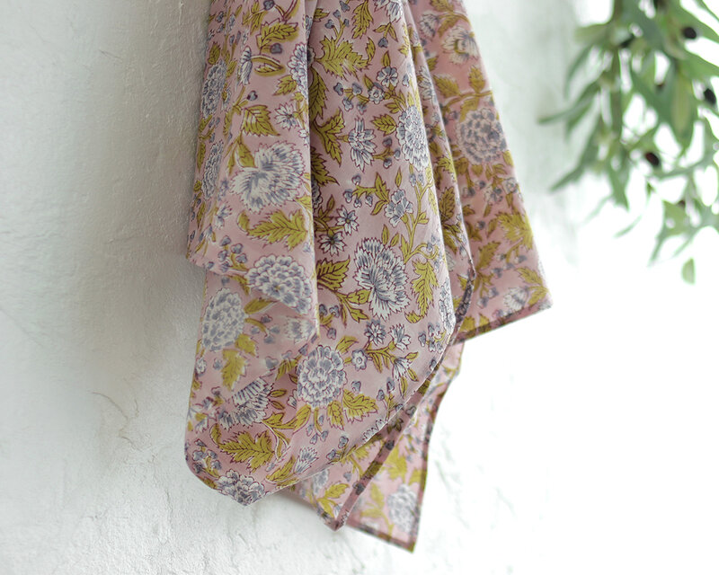 木版染め ブロックプリント フリークロス マルチカバー (フローラル/ピンク)