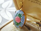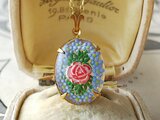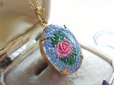 1940ー50年代頃、チェコまたはGermanヴィンテージ、約18×13㎜ほどの美しい薔薇と勿忘草のGlassインタリオでお作りしましたネックレスです。