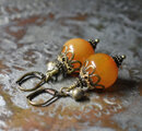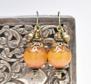 まん丸艶やかなアフリカンアンバーと民族鈴のピアス(淡)