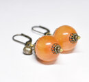 まん丸艶やかなアフリカンアンバーと民族鈴を繋いだピアスです。