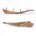 流木裏は平たんになるよう削っているほか、ねじくぎで固定するための釘穴を2つ開けております。