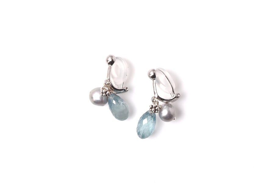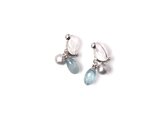 ぷっくりとしたシルバーカラーの淡水パールとインドシルバーを添え、ゴロッと存在感のあるイヤリングに仕立てました。