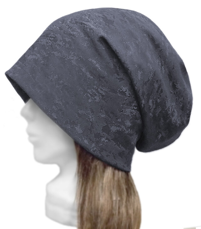 ロングルーズワッチキャップ◆迷彩(カモフラ)柄ジャガードストレッチニット/グレー系 ◇ゆったりサイズ・長いシーズン着用◇